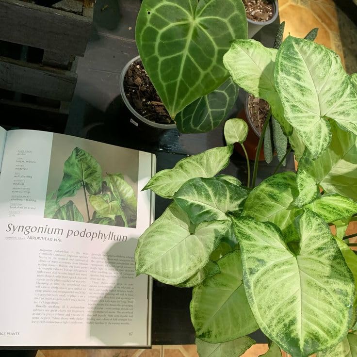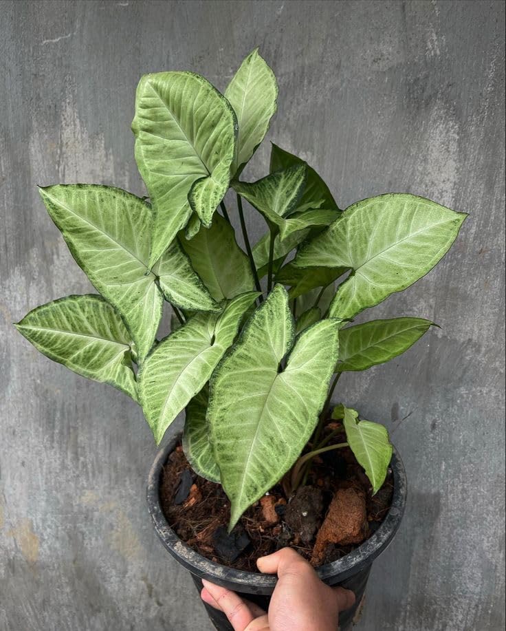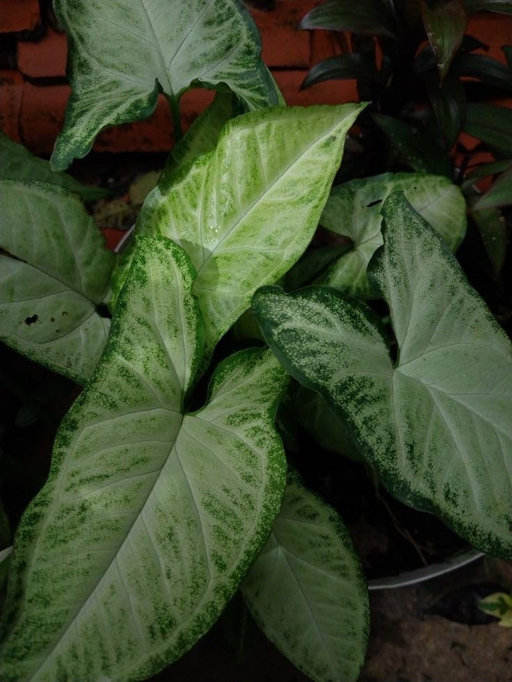 - نبات داخلي: سينجونيوم بأوراق مخططة بيضاء وخضراء جميلة، مثالي للديكور الداخلي وتنقية الهواء
