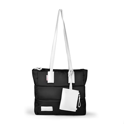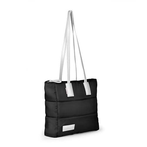 B.S collection - شنطة كتف للنساء من وايت بي اس كوليكشن يد كبيرة توت القماش المبطن الناعم أبيض