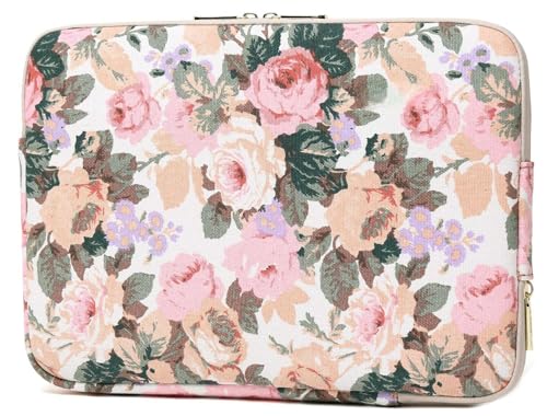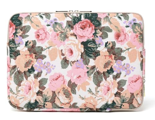 KASTWAVE - White Camellia Waterproof Canvas Laptop Sleeve with Front Pocket, Shockproof Padded Case for MacBook Pro 15.4 A1707 A1990, Lightweight Protective Laptop Pouch (14-14.1 inch)