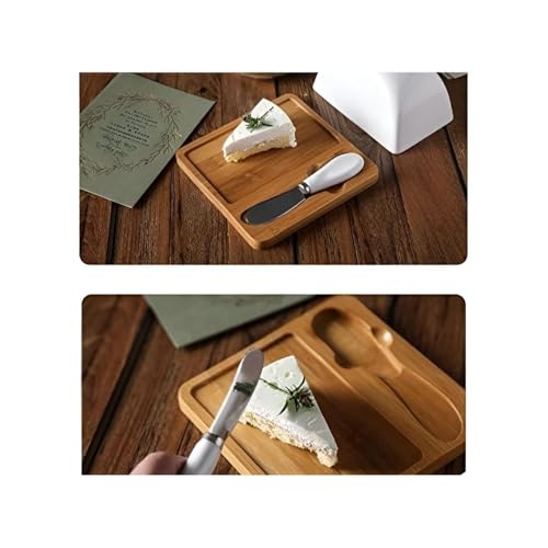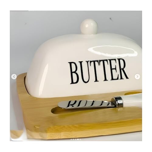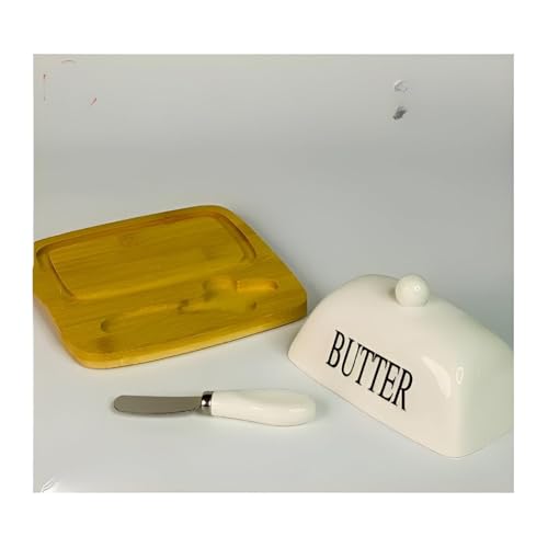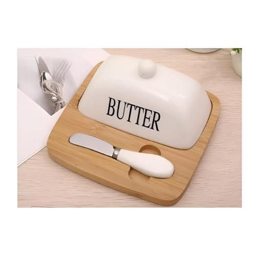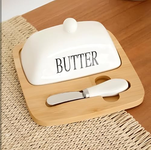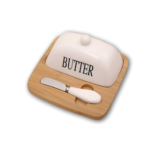 Generic - White Ceramic Butter Dish - Features bamboo base and stainless steel spreader, perfect for home or restaurant use.