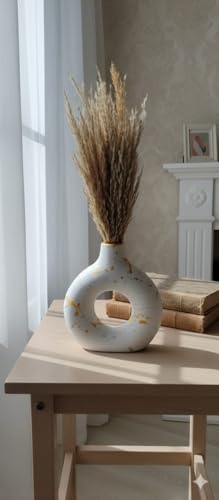 - Unique modern design: unique round design white ceramic vase with round hole in the middle, decorated with elegant gold spots add a sophisticated artistic touch