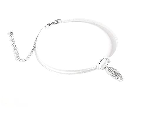 Other - عقد قطيفه ابيض بقلادة ريشه فضى للنساء