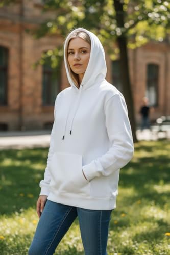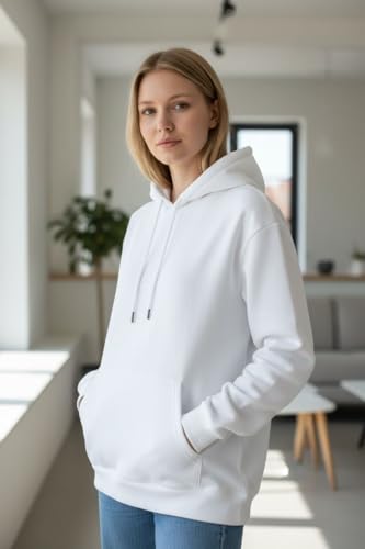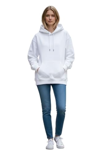 white chemise - سويت شيرت بغطاء رأس من الفوم كابيتشو مع جيب أمامي للجنسين بتصميم حديث من وايت شميز، (عبوة من قطعة واحدة)