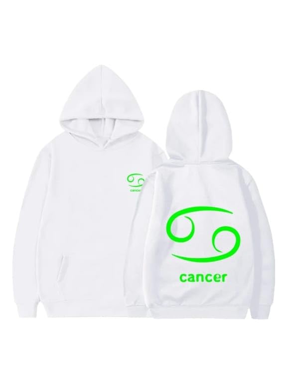 Generic - هودي قطن ابيض مع شعار برج السرطان بلون اخضر ليموني مقاس (9-12 سنة)
