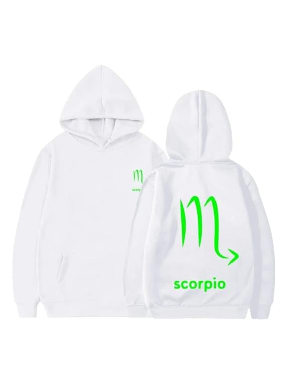 Generic - هودي قطن ابيض مع شعار برج العقرب بلون اخضر ليموني مقاس (6-9 سنوات)