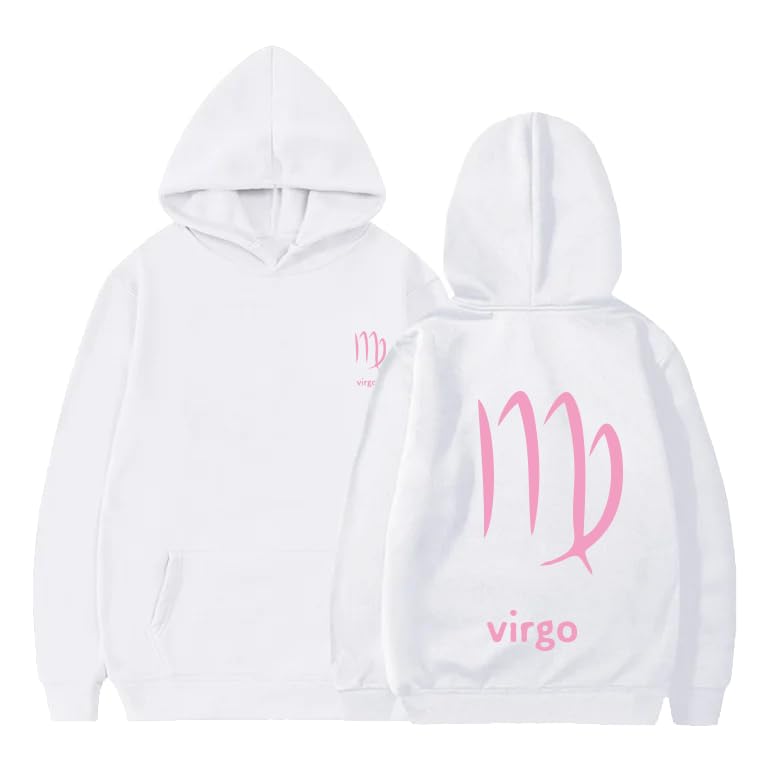Generic - White cotton hoodie with virgo zodiac pink Logo size (M)