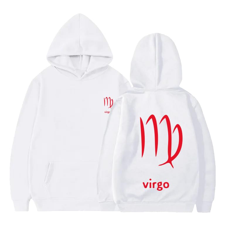 Generic - White cotton hoodie with virgo zodiac red Logo size (S)