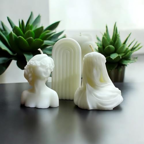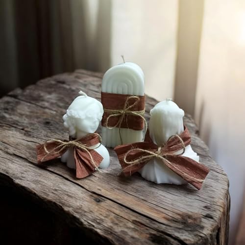 Generic - White Decorative Candles with Art Shapes with Fragrance, Handmade Set of 3 with Gift Box