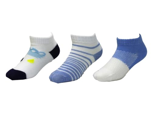 White FLOWER LIFE STYLE - White Flower Boys? Cotton Ankle Socks 3 Pieces Size 0 Months - White & Blue
