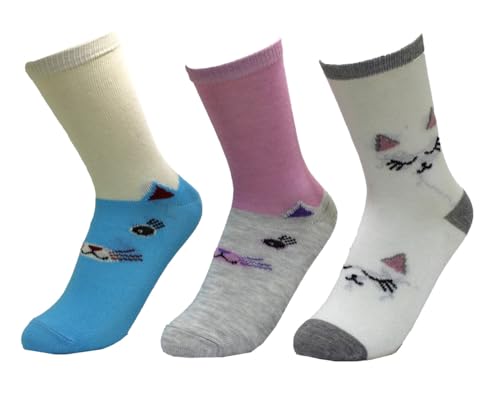 White FLOWER LIFE STYLE - White Flower Girls? Cotton Crew Socks 3 Pieces Size 6 Years - Multicolor 1101-6-Q3