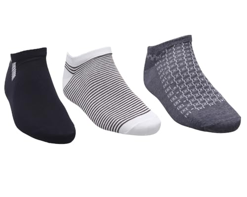 White FLOWER LIFE STYLE - White Flower Men Ankle Socks Set Pack of 3 Half Socks Size 40-45 - Multi Color L3-94