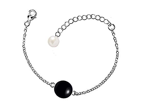 generic - سوار سلسلة مطلي بالذهب الابيض مع خرز اسود ولؤلؤ للنساء
