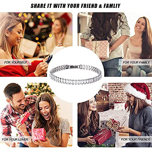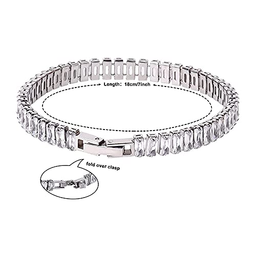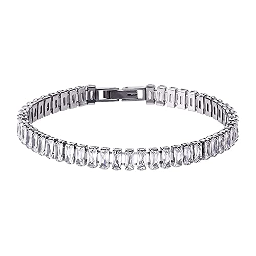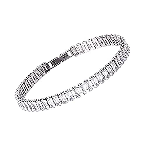 Generic - White Gold Plated Tennis Modern Classic Fashion Sparkling Baguette Cut Cubic Zirconia Tennis Bracelet By Julia Store