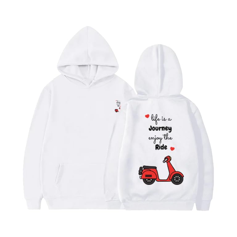 Generic - White Hoodie with Red Scooter Print, Life is a Journey Quote, Front and Back Design Size(M)