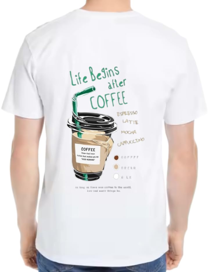 Generic - white oversize Youth T-SHIRT back art over size TEXT job work 57 planet life begins after coffee