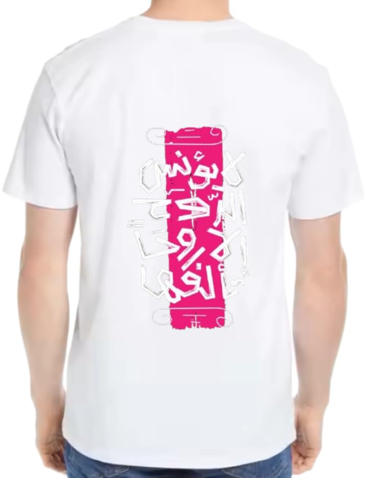 Generic - white oversize Youth T-SHIRT back art over size TEXT job work 75 لا يؤنس الروح الا روحا تألفها