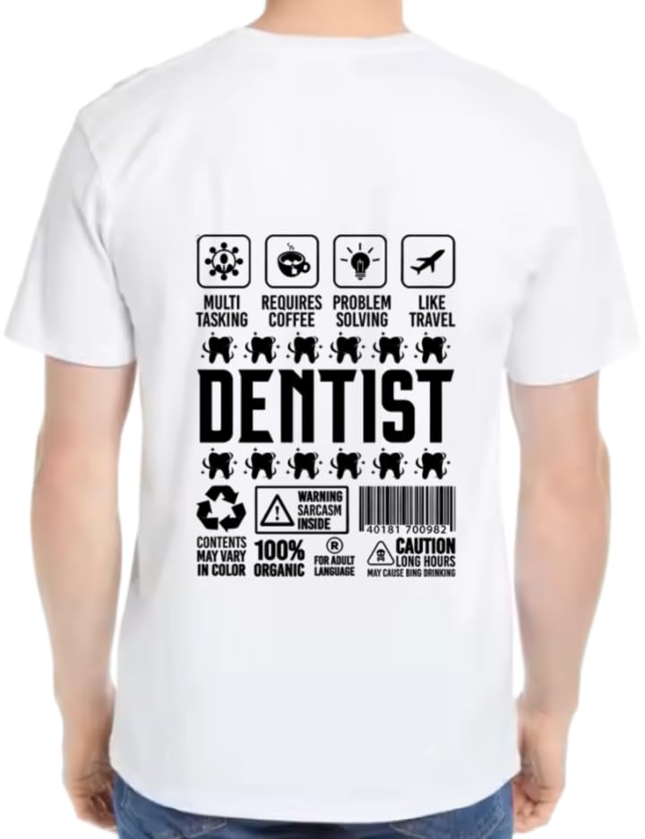 Generic - white oversize Youth T-SHIRT back art over size TEXT job work 9 dentist