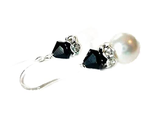 Other - White Pearl and Black Crystal Earrings for Women