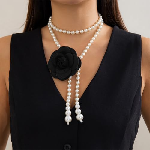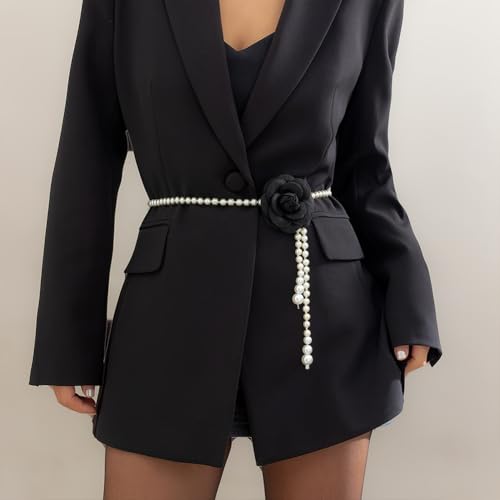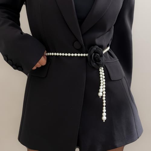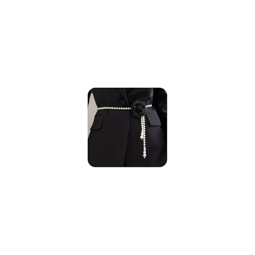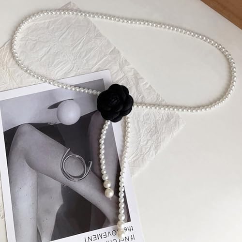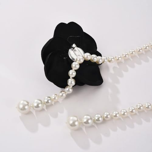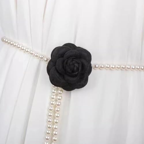CIWEAI - White Pearl Beaded Flowers Belts for Women Fashion Black Camellia Pearl Waist Chain Aesthetic Wedding Dress Belt Jewelry