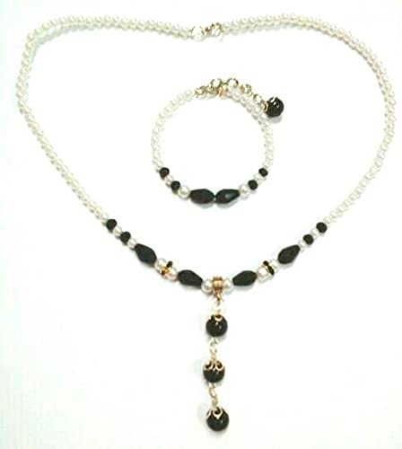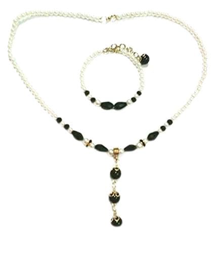 Generic - White Pearl Black Beads Necklace Bracelet Set for Women , 2724447190374