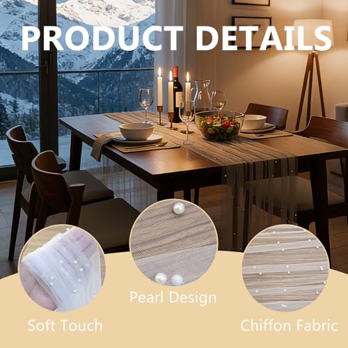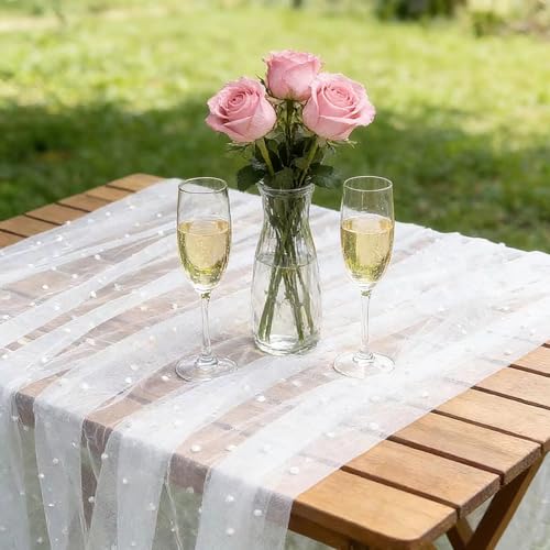 KRENIE - مفرش طاولة ابيض لؤلؤي مقاس 80 × 300 سم - مفرش طاولة من التول الشفاف والدانتيل لحفلات الزفاف - مفرش طاولة من الشاش اللؤلؤي لحفلات الزفاف وحفلات اعياد الميلاد وديكور طاولة الطعام