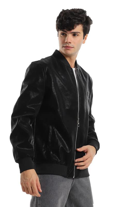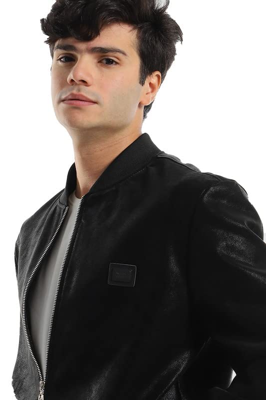 White Rabbit - White Rabbit For Men's Textured Leather Zipper Closure Lightweight Jacket