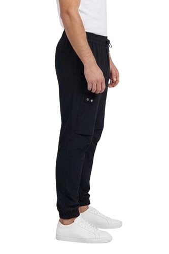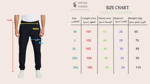 White Rabbit - وايت رابيت بنطلون رياضي عملي سهل الارتداء للرجال بلون اسود سادة