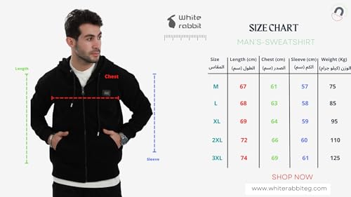 White Rabbit - وايت رابيت سويت شيرت بيسيك بغطاء للرأس وسوستة للرجال من الداخل من الصوف