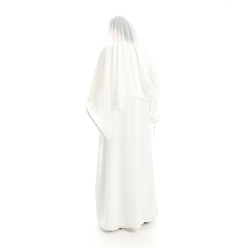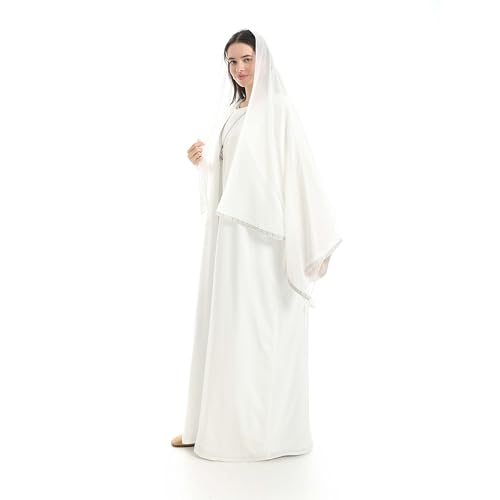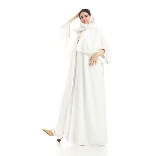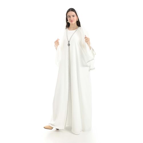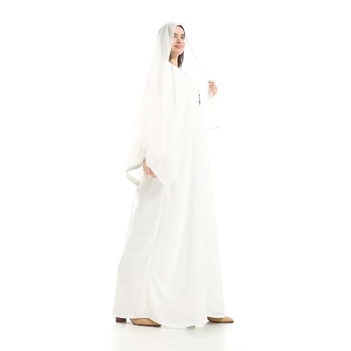 Red Circle - عباية بيضاء برقبة دائرية وحواف مخيطة بقصة واسعة للنساء