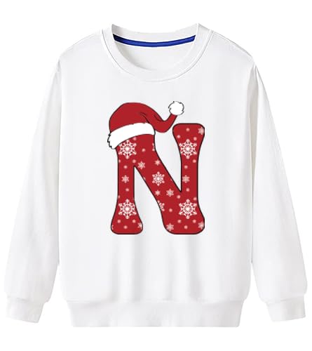 Generic - سويت شيرت ابيض بتصميم جرافيكي بحروف الكريسماس (N) مقاس (M)