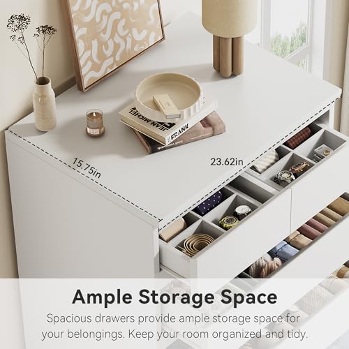 - Modern Design: Combined with an elegant white surface and handle-free design, this 5-drawer dresser is easy to adapt to any decorative style and creates a spacious look for your space.