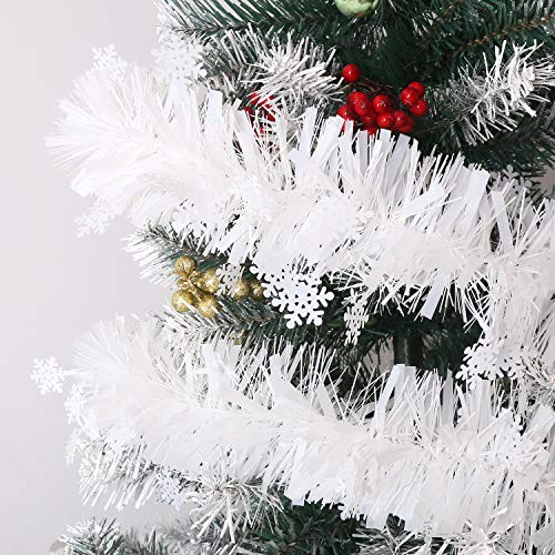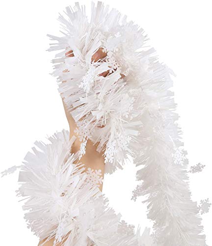 - Material: White tinsel is made of durable PVC material, durable and reuseable , white color quite fit for winter woodland decoration, Looks very beautiful and hightlight the christmas atmosphere.