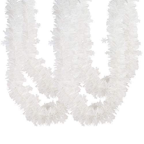 - Size: white christmas tinsel each measuring approximately 3 inches in width and 32.8feet in length, really long and bush. Enough for your any craft making or decoration project.