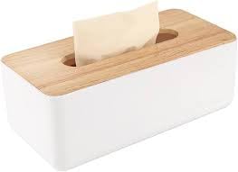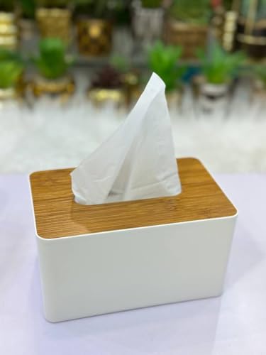 Generic - White Tissue Box with Natural Wood Cover - Modern Stylish Design Large Size Different from the Market Add a Touch of Luxury and Tidy for Bedrooms, Receptions and Everywhere in the House