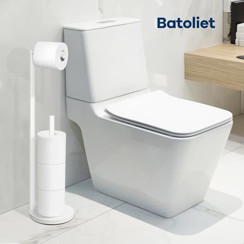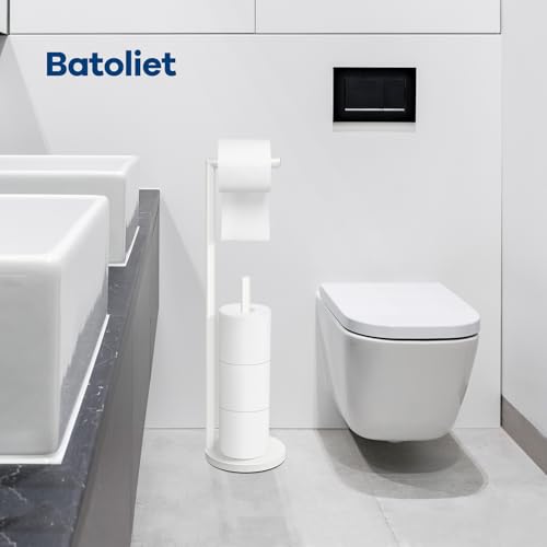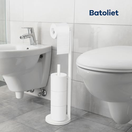 Batoliet - White Toilet Paper Roll Holder - Free Standing, 4 Roll Capacity, Bathroom Storage