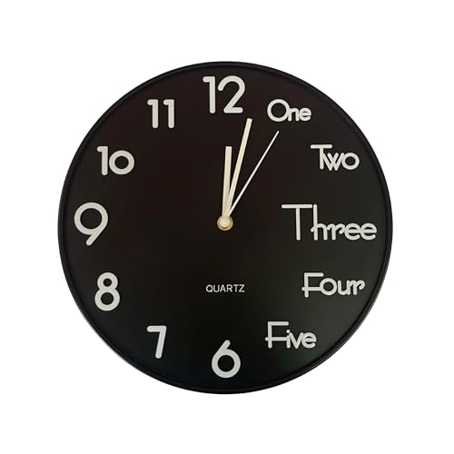 Generic - White Wall Clock with Black Background And Black Frame Silent, non-ticking battery-operated round modern wall clock for office, school, or home (12 inches)