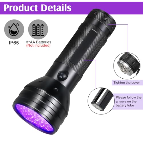 - سطوع أكثر بنسبة 30% مع تغطية واسعة: يتميز مصباحنا اليدوي بـ 51 مصباحًا من نوع ليد للأشعة فوق البنفسجية، مما يجعله أكثر سطوعًا بنسبة 30% من أجهزة الإضاءة الخلفية النموذجية. يزيد هذا السطوع من مدى الرؤية على مساحات أكبر، مما يضمن عدم تفويت أي بقعة أثناء الفحص. يمكنك الوثوق به للكشف الشامل عن البقع.