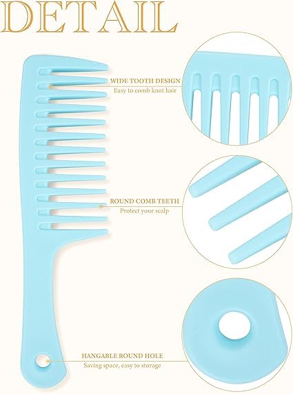 Generic - مشط تسريح الشعر واسع الأسنان، أزرق فاتح، بلاستيك