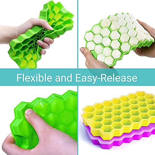 WIDERZONE - قالب مكعبات الثلج من وايدرزون، مرن وامن ومصنوع من السيليكون بتصميم خلية النحل، 37 تجويفة