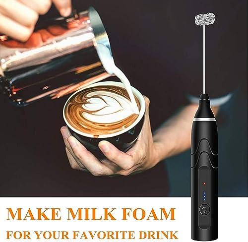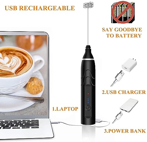 WIDEWINGS - Electric Handheld Milk Wand Mixer Frother for Latte Coffee Hot Milk, Milk Frother for Coffee, Egg Beater, Hand Blender, Coffee Beater with Stand (Black-USB Rechargeable)