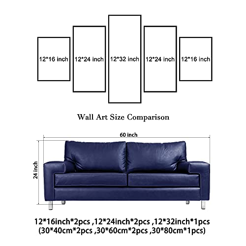 - 5 قطع من اللوحات الفنية القماشية المشدودة على إطار خشبي بلون رمادي جاهزة للتعليق لتزيين المنزل وديكور الحائط. تحتوي كل لوحة على خطاف مثبت بلون أسود على إطار خشبي لسهولة تعليق اللوحة.