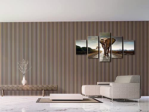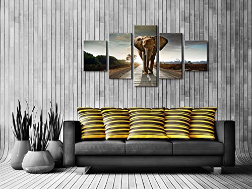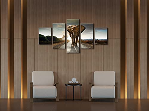 Wieco Art - لوحة فنية جدارية بتصميم فيل مطبوعة على قماش، لوحات فنية جدارية لغرفة المعيشة وغرفة النوم وديكور المنزل، لوحات فنية مشدودة ومؤطرة لمناظر طبيعية للحيوانات بطباعة جيكلي مقاس كبير من ويكو ارت، 5 قطع