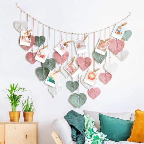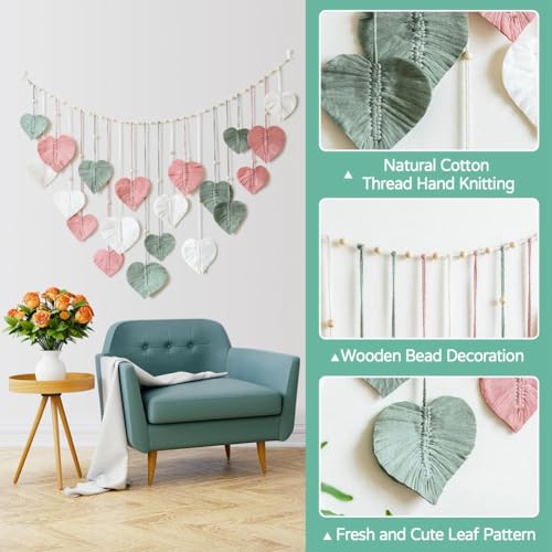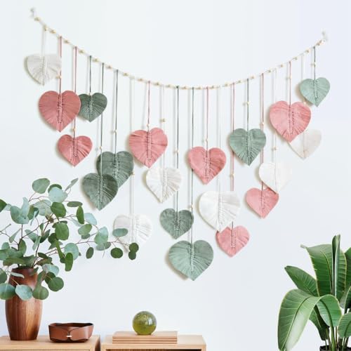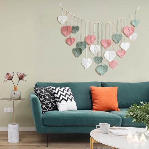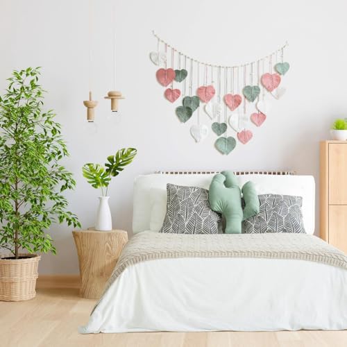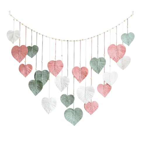 - Enhance the aesthetics of your home with a large and elegant macrame wall hanging featuring heart shaped leaf designs. This handmade cotton tapestry infuses your living room, bedroom, children's room or porch with warmth, comfort and a quirky color palette that refreshes any space.