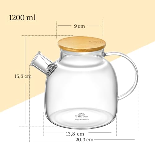 Wilmax England - Wilmax - Glass Teapot with Bamboo Lid - 1200 ml - Tea Maker for Loose Tea - Glass Jug - Heat-Resistant Glass - Teapot - Glass Jug for Hot and Cold Drinks