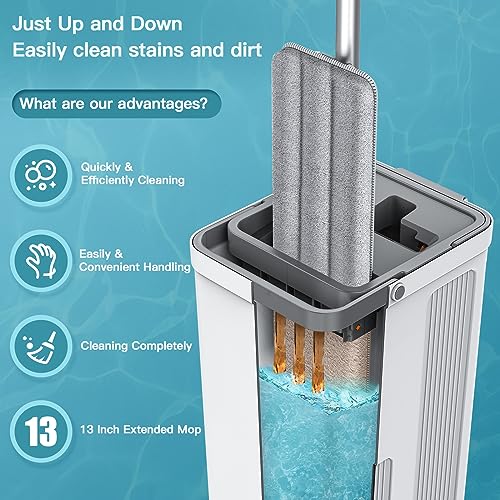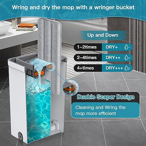 WinDeel - مجموعة ممسحة ودلو مع عصارة | تتضمن ممسحة مع دلو، وسادتي ممسحة بديلة من المايكروفايبر | لوازم تنظيف مزدوجة الاغراض للارضيات والجدران (M(وسادتان))