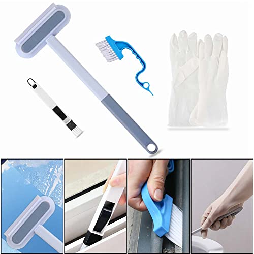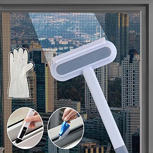 Outigu - Window Cleaner, Window Cleaning Brush, 4 in 1 Multifunctional Screen Brush with Handle, Window Cleaning Squeegee Kit, Outdoor Window Screen Cleaner Brush and Groove Window Cleaning Tool