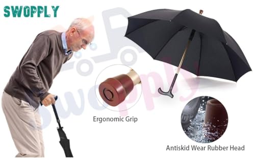 Generic - Windproof Travel Umbrella for Rain, Durable Windproof Umbrella and Portable Large Solid Wood Cane Umbrella with Cane Umbrella Handle for Seniors