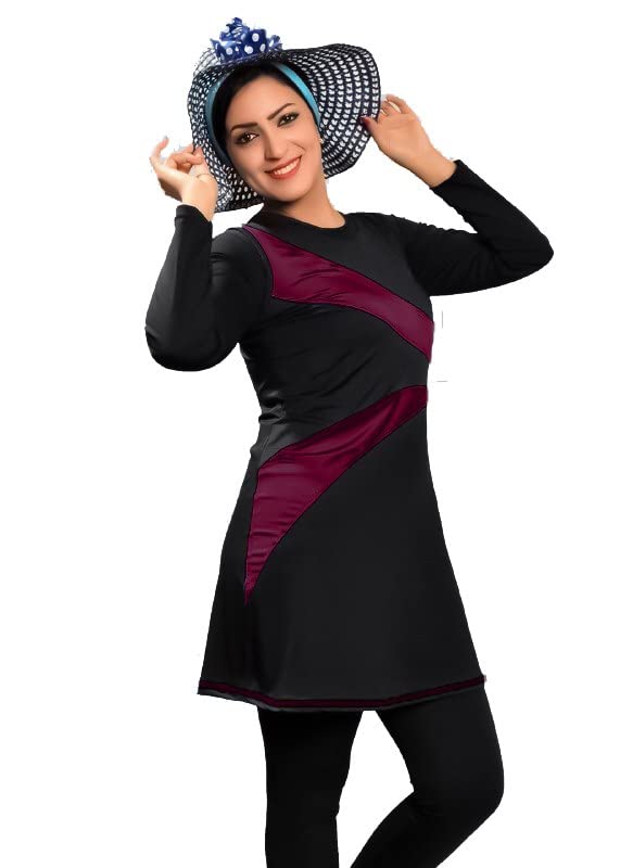 Generic - Wine Burkini Women's Black 3 Piece Long Vest Pants Bonnet