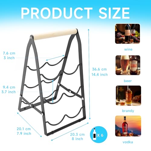 - Space Saving: The wine racks can hold up to 6 bottles of wine, with a volume of only 8X8X14inch / 20X20X36cm. Therefore, placing the wine shelf on a small countertop, cabinet, or food cabinet is also very suitable, saving you valuable space.