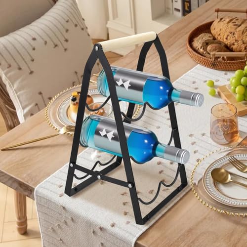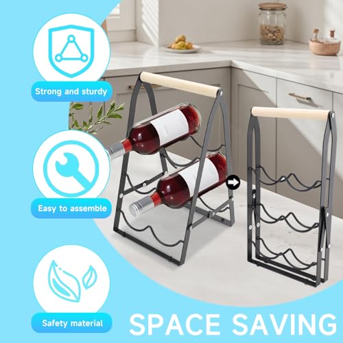 Quxddy - Wine Racks Countertop, 6 Bottle Rack Foldable Holder for Wine Bar Home Bar Tabletop, Cabinet Inserts, Kitchen, Wine Cellar Storage No Assembly